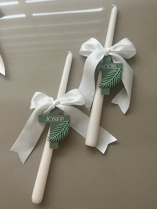 Taper Palm Sunday Candle - Personalised Tag