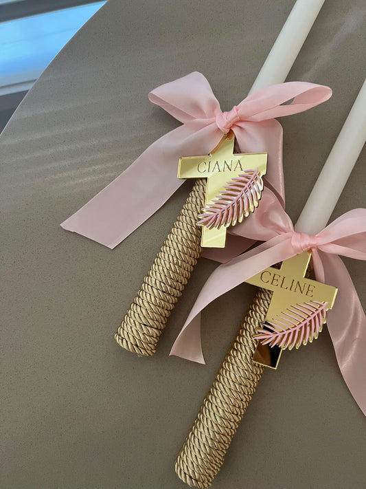 Twisted Taper Palm Sunday Candle - Personalised Tag