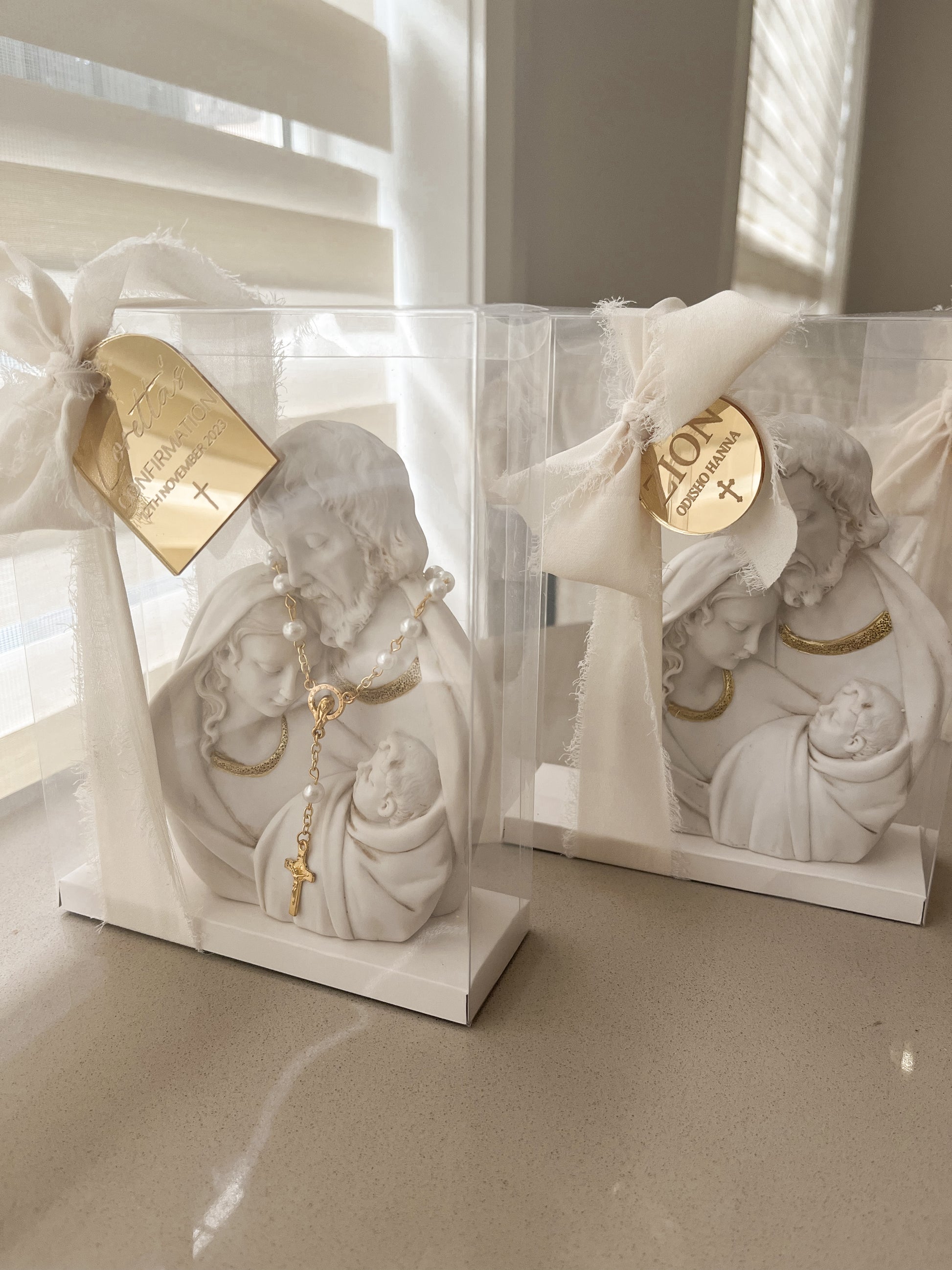 Our simple, yet stunning short holy family statue pieces will make the most perfect bomboniere to your next religious event.